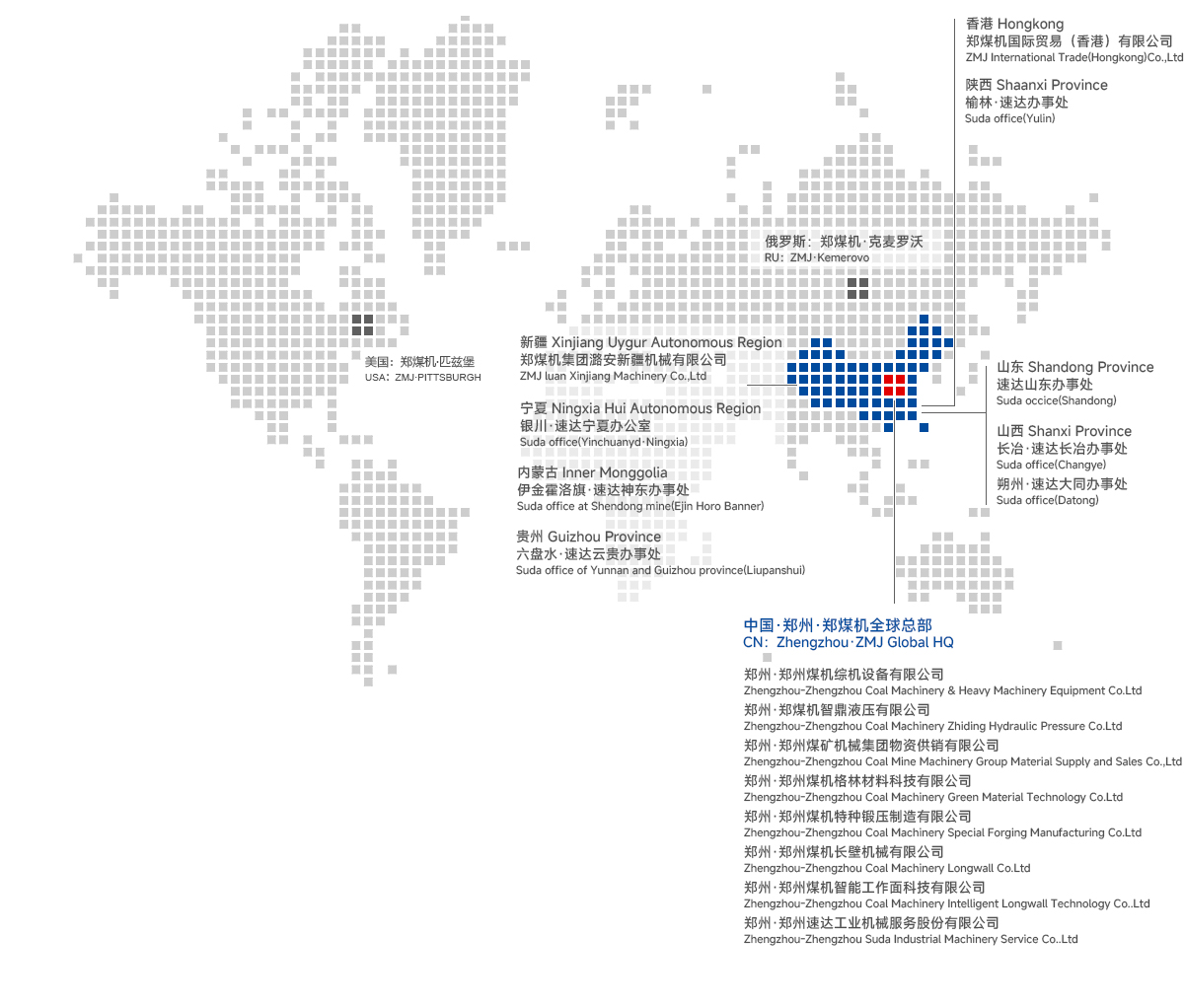 郑煤机已经成为全球重要的煤矿综采技术和装备供应商,具有国际影响力的汽车零部件制造企业。 集团公司拥有28个生产、研发、销售基地,遍布全球17个国家,同时涉足煤矿机械、汽车零部件、投资等多个领域, 成为了立足中国、面向全球的高端装备制造集团。